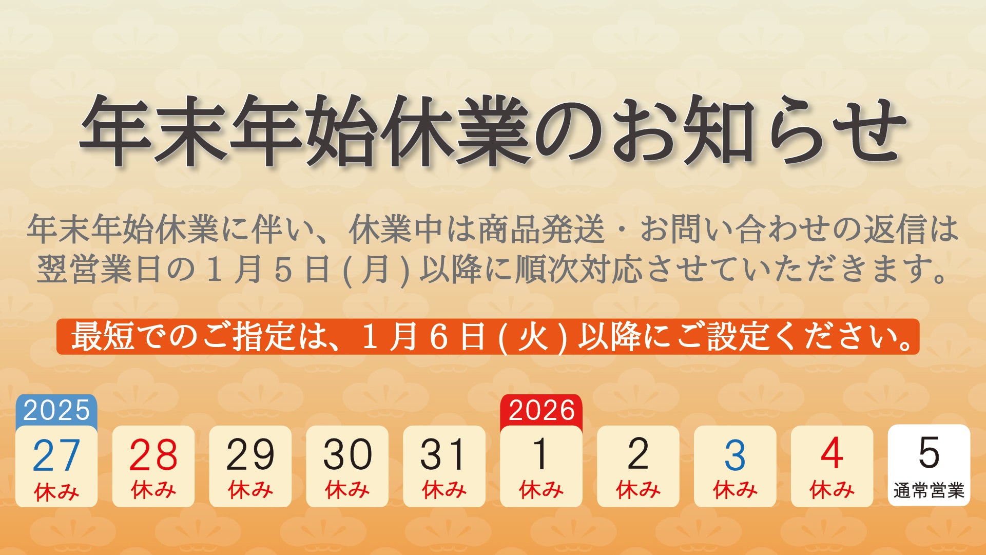 【お知らせ】年末年始休業につきまして